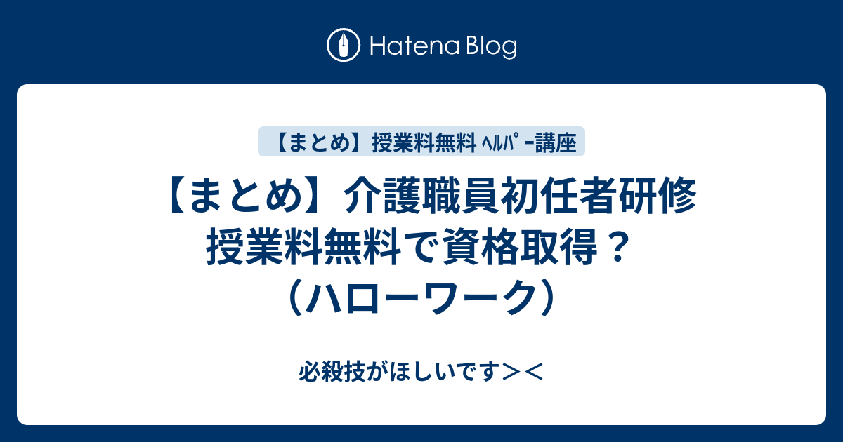まとめ 介護職員初任者研修 授業料無料で資格取得 ハローワーク 必殺技がほしいです